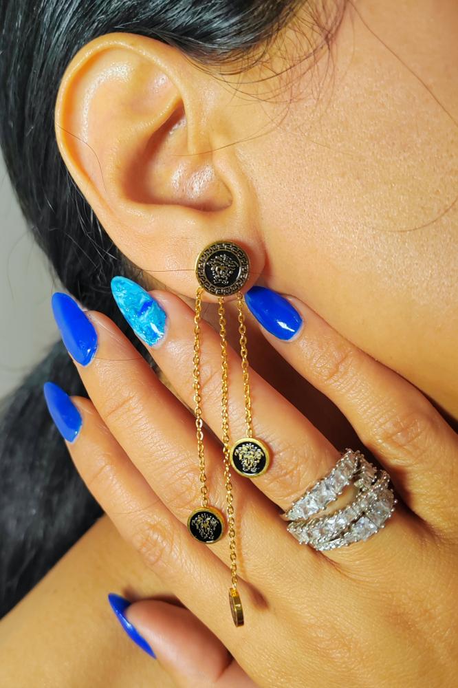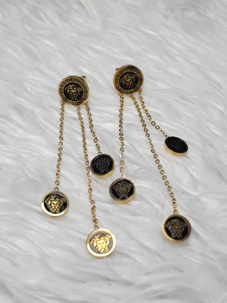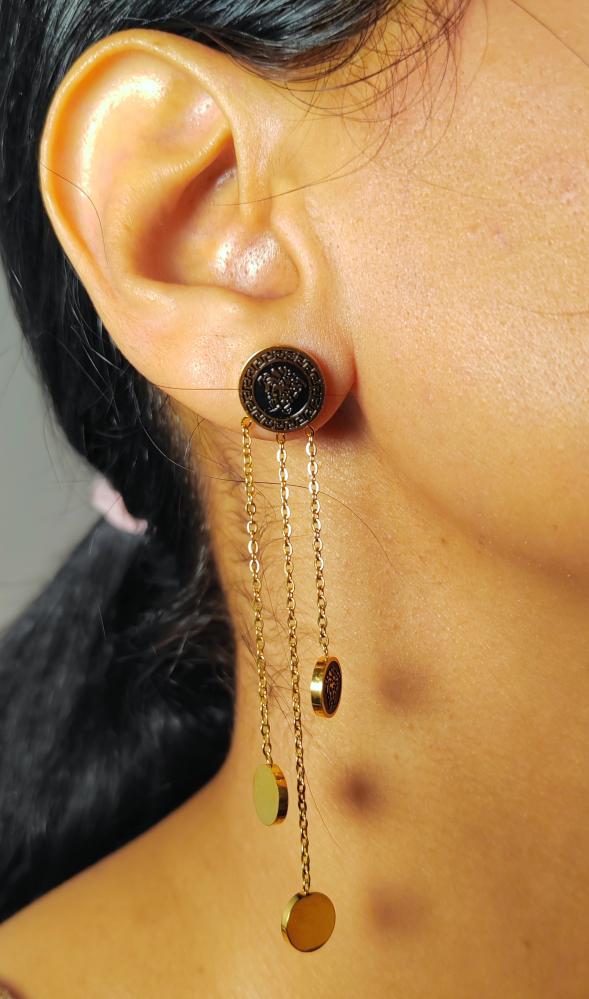 هذا الحلق الطويل بتصميم فرزاتشي والمصنوع من الستانلس ستيل يجمع بين الجمال والجرأة مع لمسة من البريق بفضل تفاصيله الدقيقة وتصميمه الأنيق،