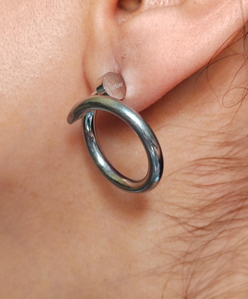 هذا الحلق المصنوع من الستانلس ستيل والمصمم على شكل مسمار فضي يجمع بين الفخامة والأناقة مع لمسة من الحداثة، ويعد قطعة مجوهرات رائعة لإضافة لمسة من الرقي